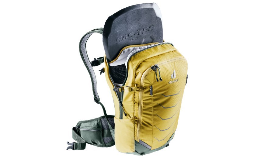 On most protector backpacks, the protector sits in a slot directly facing the back wall of the backpack – behind the hydration bladder, if you’re using one. It is usually a large plate that is fixed in place to prevent slippage. Different materials are used to make them, but what they all have in common is that they absorb shocks and distribute acute forces across a larger surface. Be aware, however: there are backpacks with so-called multi-impact protectors, and also those that remain permanently deformed after a fall and have to be replaced. There are advantages and disadvantages here: multi-impact protectors carry significantly more weight, while other protectors must be replaced after each fall. The more suitable system for you also depends on how often and how long you are on the road.
