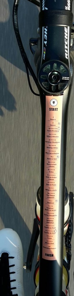 Markus und ich sind die mittlere Runde mit 145 km Distanz, 18 Sektoren (von denen 2 gezeitet wurden) und ca. 25 km Pavé (Kopfsteinpflaster) gefahren. Nach der Anreise am frühen Morgen ging es in Roubaix am legendären Velodrom voller Vorfreude und mit Ersatzschläuchen in jeder Tasche los, zumindest für mich. Markus wusste da bereits, was uns erwartet, schließlich ist er das Rennen mehrfach als Profi gefahren und hat sogar unter den Top 30 gefinisht. Ich war zu diesem Zeitpunkt auch noch unbekümmert, hatte ich doch in den vergangenen Wochen zielsicher jedes Schlagloch und jeden Pflasterstein in der Umgebung angesteuert. Da sollten doch auch diese nordfranzösischen Steinchen kein Problem werden…