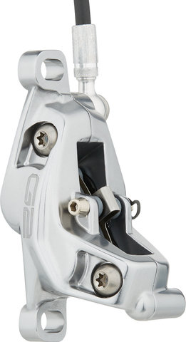The G2 Ultimate Disc Brake set for front and rear wheels by SRAM is extra light thanks to carbon levers and titanium bolts. Four pistons make it the ideal solution for all-mountain and enduro trails. High-quality cartridge bearings at the lever pivot provide a good braking feel. Optimise your braking experience with a variety of adjustment options: after easily adjusting the grip's width to your hand size via tool-free Reach Adjust, you can precision-tune the lever stroke from which the brakes should grip via Contact Point Adjustment. SwingLink™ technology ensures precise brake control and high dosage in every situation. Bleeding Edge Technology makes bleeding particularly easy work.