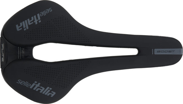 The Flite Boost saddle by Selle Italia has a pressure-relieving Superflow cut-out and convinces ambitious road cyclists with its titanium rails.