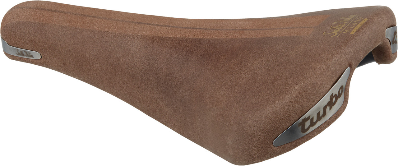 The Selle Italia Milano Turbo saddle is for passionate cyclists who are looking for something special. It is handmade from leather and combines refined design with sportiness. High-quality materials, attention to detail and a selected colour scheme combine to create an elegant product. In the Bonnie version, the Milano Turbo comes all in black with a quilted look, in the Bullitt version it is dark brown with a slightly contrasting stripe in the centre and as a "racer" it comes in light brown, subtly textured leather.