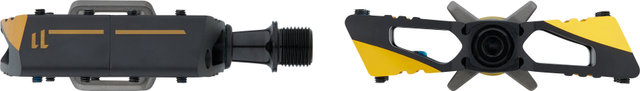 The most successful downhill pedal is now available in a premium edition with titanium wings and double bevelled edges that minimise weight and maximise performance. The grooved body provides more grip when clicked out. Added to this are the " Traction Pads" : exchangeable rubber plates with which the shoe and pedal can be brought to an optimum fit. The number of pins - 8 per side - and the four-sided click-in mechanism have remained unchanged.